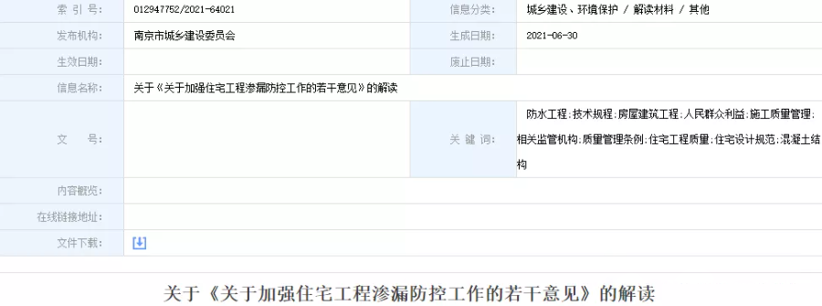 南京市城鄉(xiāng)建設(shè)委員會(huì)發(fā)布《關(guān)于加強(qiáng)住宅工程滲漏防控工作的若干意見》